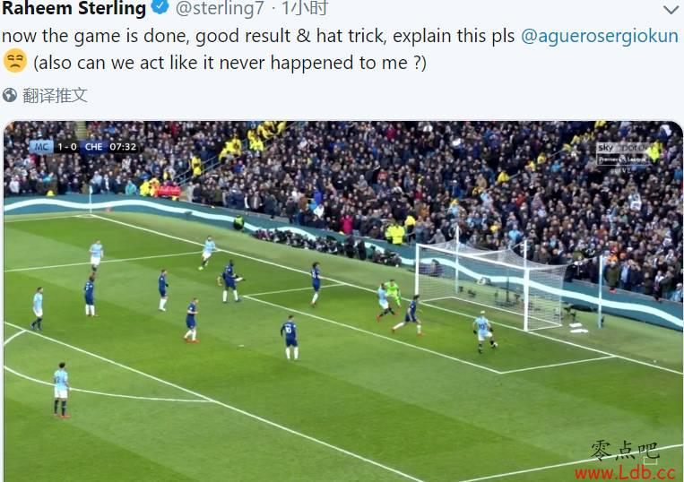 赛后,斯特林在社交媒体上庆祝了这场大胜:现在比赛结束了,很好的结果和帽子戏法,但阿坤你能解释下空门不进咋回事吗?
