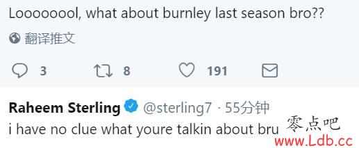 不过,网友们纷纷问他,上赛季对伯恩利的那次又怎么说?斯特林尴尬地回复说:我不知道你在说什么,恳请球迷们假装没事发生过。