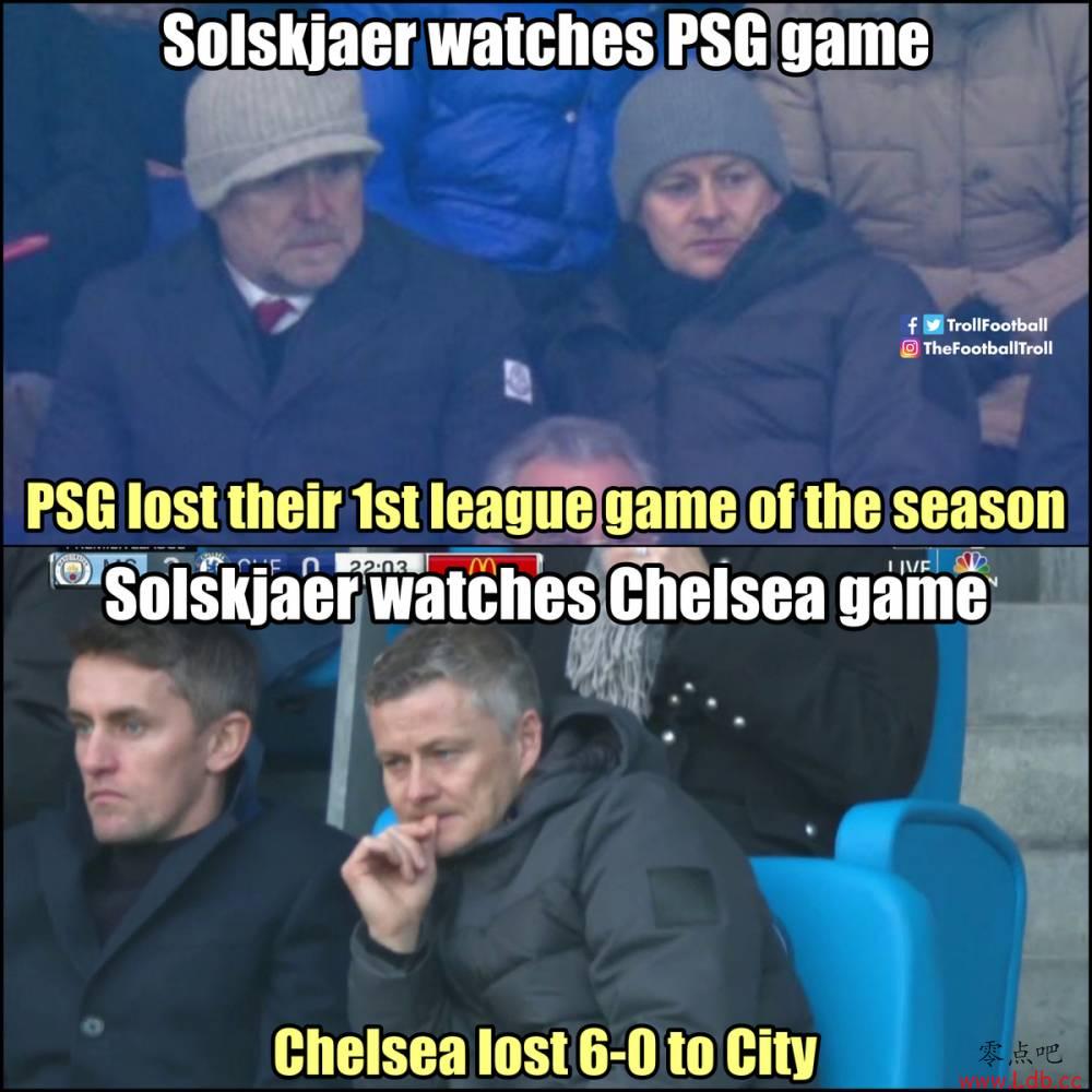 不过索尔斯克亚似乎并不受到对手“欢迎”,因为他前去观看欧冠对手巴黎的比赛时,巴黎遭遇了赛季首败。现在,他出现在争四对手比赛的观众席上,蓝军又遭血洗。