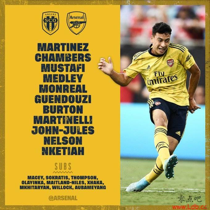 英超直播吧8月1日讯阿森纳对阵昂热的友谊赛,赛前双方公布了首发阵容
