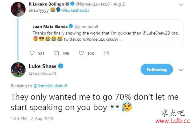 卢克-肖回复道:“他们只让我发70%的功力,别让我开始说你坏话哦孩子。”