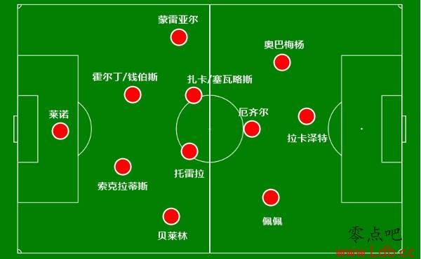 球队很有可能将N-佩佩放在他所喜欢的右边路,让奥巴梅扬和拉卡泽特轮番居中。厄齐尔在他们的身后输送炮弹的同时,让姆希塔良和伊沃比作为锋线三叉戟的常规替补选择。