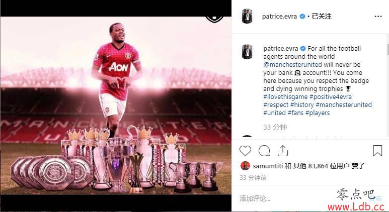 英超直播吧8月7日讯 英超的夏季转会窗口即将在明日关闭,关于曼联等球队的转会传闻也是丝毫不见停歇。而曼联名宿,刚刚退役不久的埃弗拉在社交媒体上发文表示了对曼联的支持,表示曼联不是经纪人的提款机,只有尊重俱乐部和想要赢得奖杯的球员才应该加盟球队。