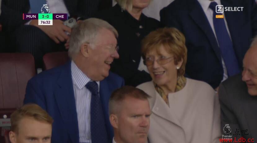 英超直播吧8月12日讯 英超首轮焦点战,曼联主场对阵切尔西。曼联三球领先后,现场观战的弗爵爷喜笑颜开。