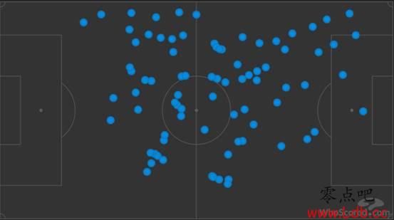 法国人本场比赛传球成功率达到了85.5%。但从触球分布来看,贡多齐的活动区域主要还是在中后场。他毕竟不是前腰,在三十米区域解决不了攻坚问题。