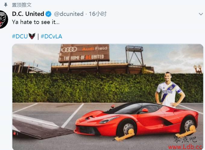 华盛顿联队在其官推上晒出即将被拖走的法拉利,P上伊布的照片并写道:讨厌看到这些...还将这条推文置顶。