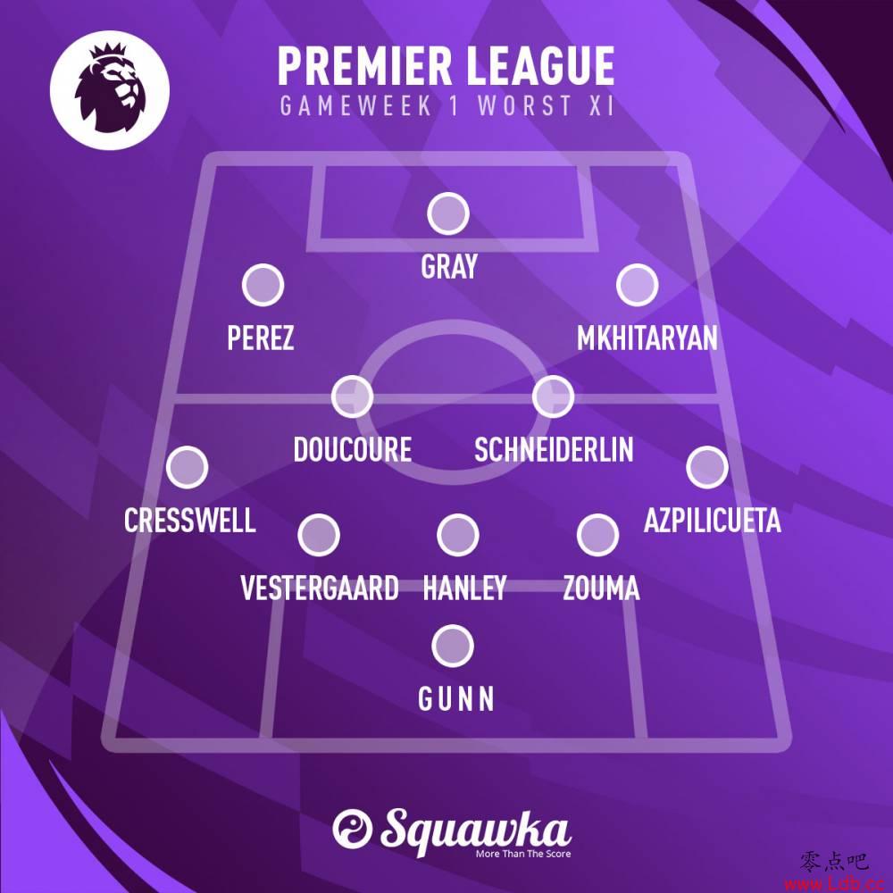 关键数据:英超首轮比赛中,有四名防守球员出现过致命失误,而祖马就是其中一位。