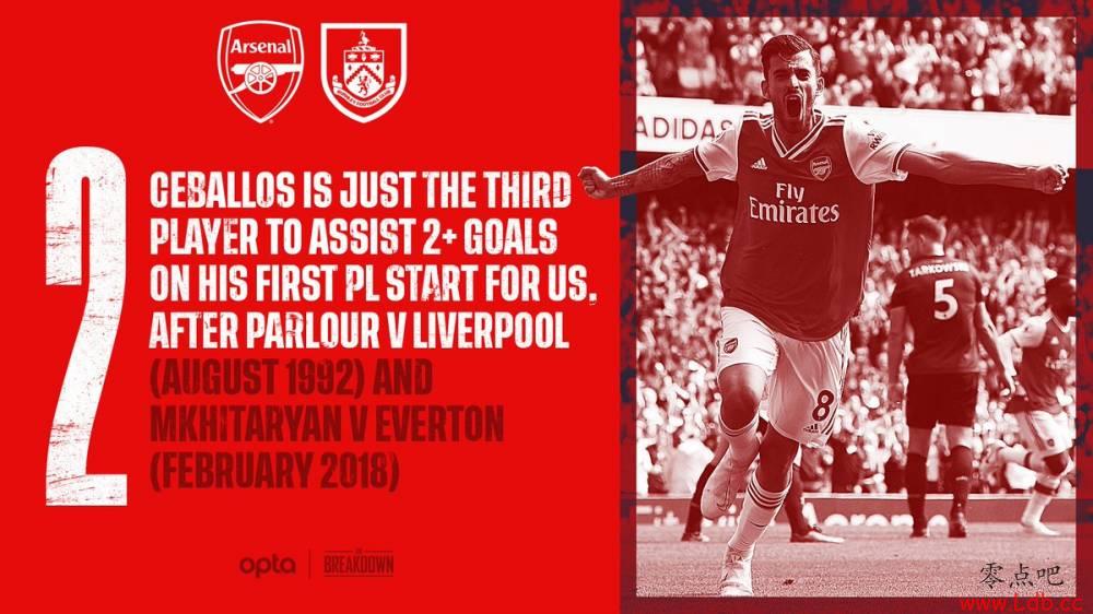来自枪手官方的统计,塞巴略斯也成为了枪手历史上第3位首次为球队首发即完成2个助攻的球员,此前2名球员分别为帕洛尔和姆希塔良。