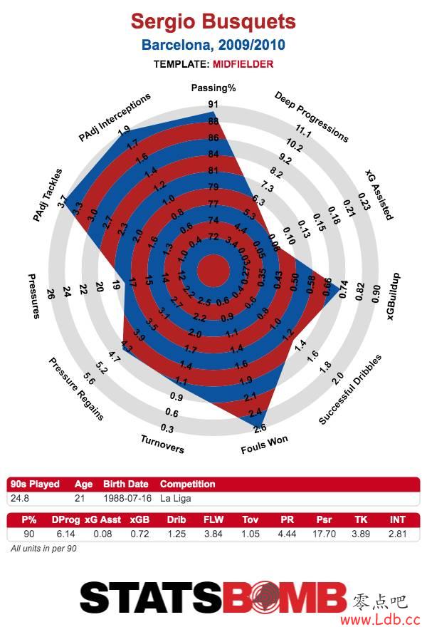 看看10年前布斯克茨的数据图,再想想罗德里的表现。瓜迪奥拉在曼城也拥有了一位类似布斯克茨这样的球员啦。