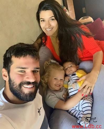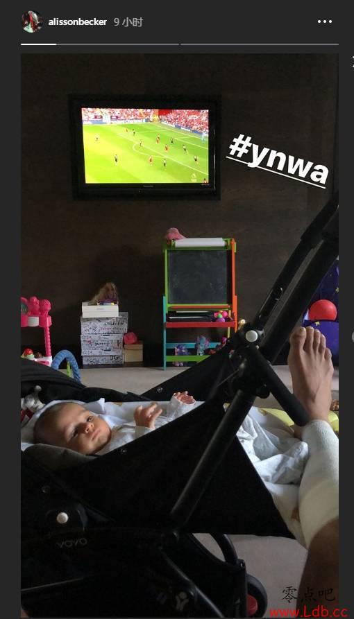 在凌晨利物浦vs阿森纳一战中,阿利森在家中一边观看比赛,一边带娃。