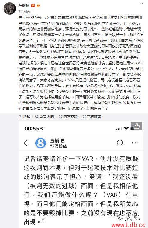 英超直播吧8月25日讯 随着英超在新赛季引入VAR,目前足坛各大主流赛事都已经采用了这项国际足联大力推广的裁判辅助系统。而关于这项技术为足球比赛所带来的利弊也日渐引起舆论的争议,著名解说员黄健翔就在微博上发文指摘引进VAR所存在的弊端。