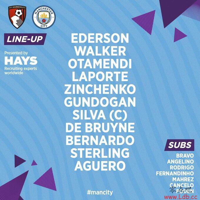 英超直播吧8月25日讯英超联赛第3轮继续进行,曼城客场挑战伯恩茅斯,赛前首发公布