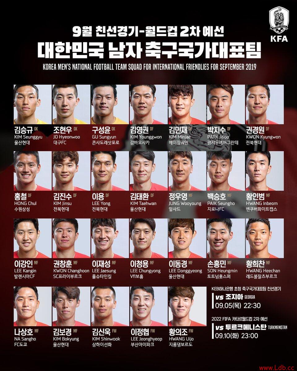 英超直播吧8月26日讯韩国国家队公布了世预赛大名单,孙兴慜领衔
