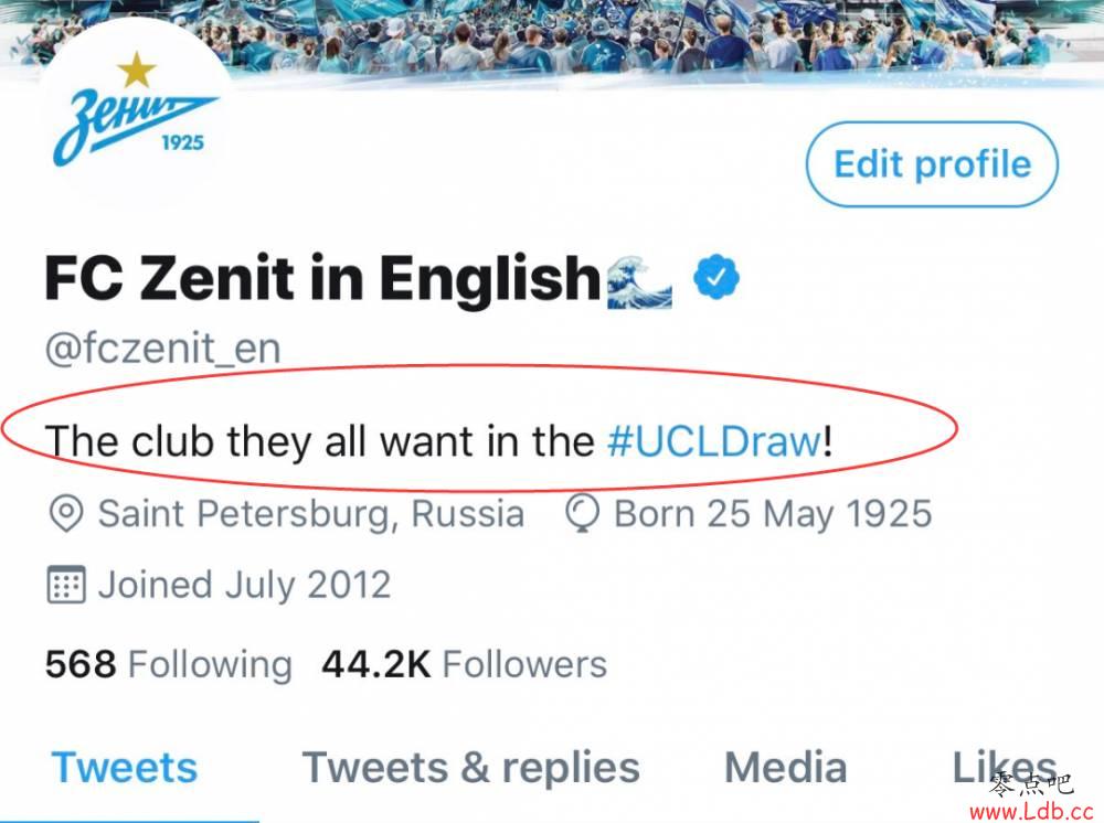在抽签即将到来之时,泽尼特官推修改了自己的推特介绍,改为了:我就是大家都想抽到的球队。