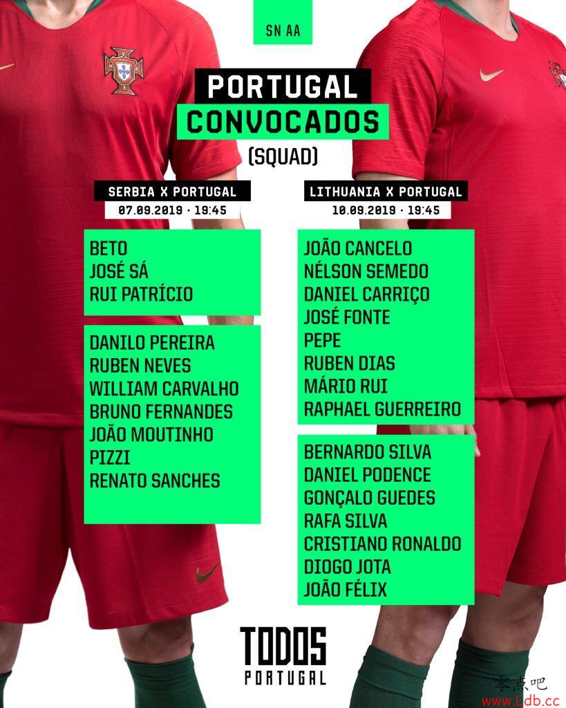 英超直播吧8月29日讯葡萄牙公布了球队最新一期的大名单