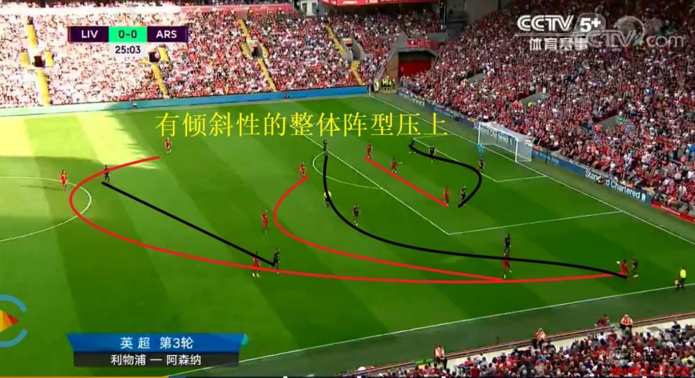 同样是前场逼抢,利物浦是怎么做的?放一张以前用过的图,大家对比一下: