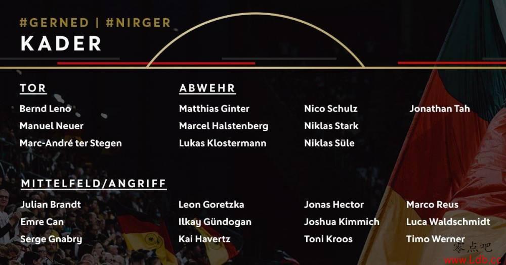 德国欧预赛大名单:罗伊斯领衔 9月将战荷兰北爱尔兰