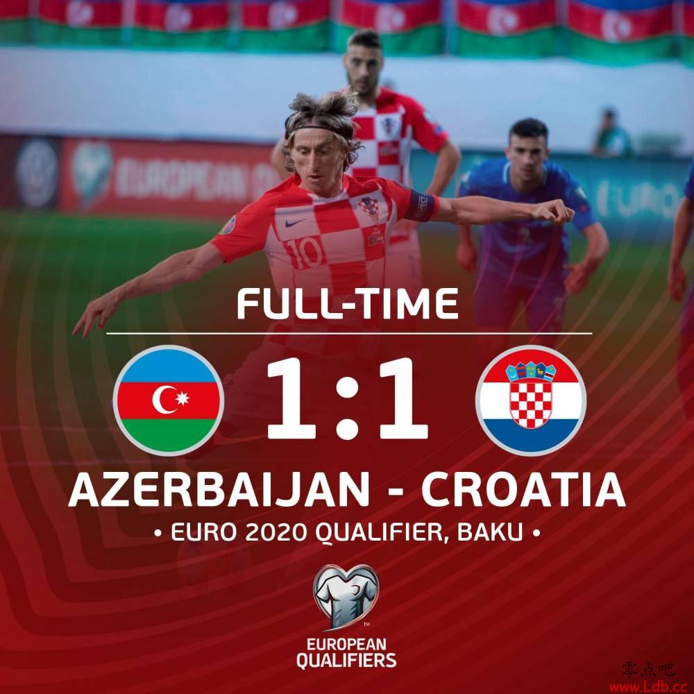 欧预赛E组,克罗地亚客场对阵阿塞拜疆。上半时佩特科维奇造点,魔笛罚中助克罗地亚先拔头筹,下半时哈里萨德一条龙霸道扳平。最终,克罗地亚1-1阿塞拜疆。