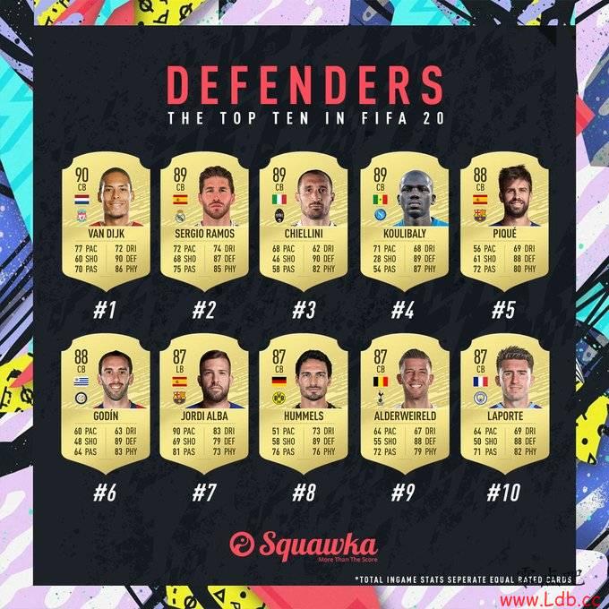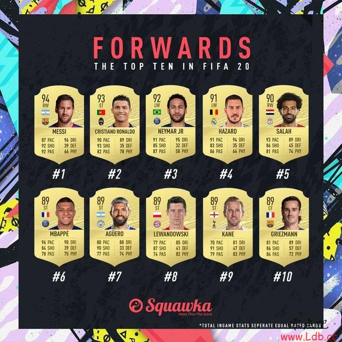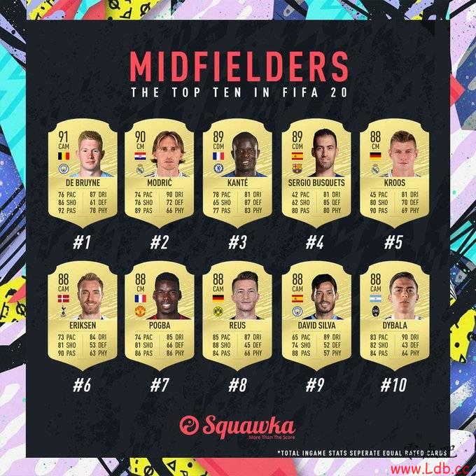 FIFA20能力值各位置TOP10:德布劳内领衔中场