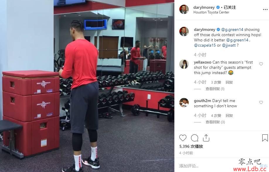 零点吧9月27日讯 今日火箭总经理莫雷在其个人社媒晒出了一段杰拉德-格林在训练中秀弹跳力的视频。