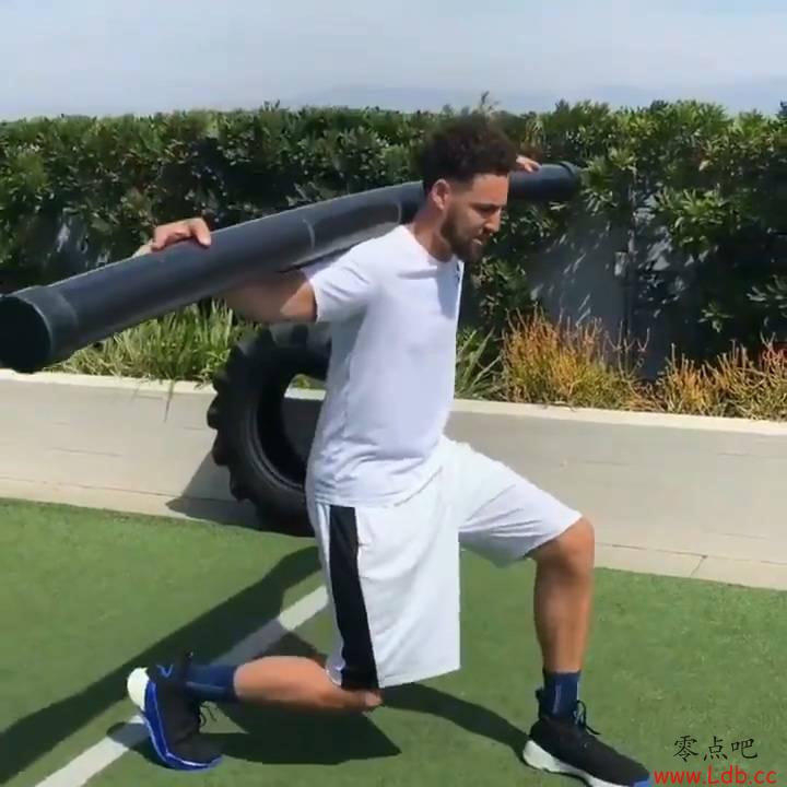 克莱举注水大水管进行训练 练习膝盖平衡能力