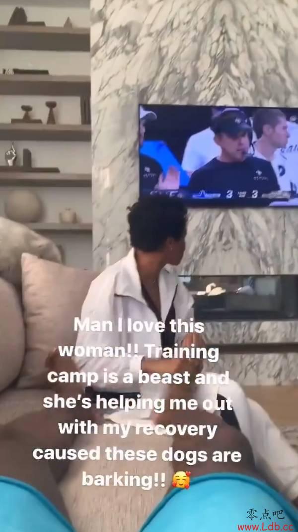 零点吧9月30日讯 詹姆斯在ins上晒出了自己在家中观看NFL达拉斯牛仔vs新奥尔良圣徒的比赛,妻子帮他脚部按摩放松的视频。