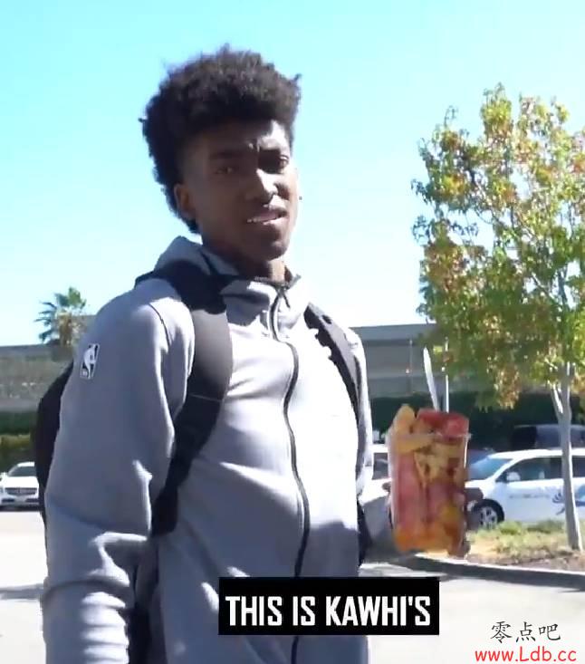 特伦斯-曼帮球队老大莱昂纳德带了一杯水果,卡本盖利则是帮着各位大哥拎包。