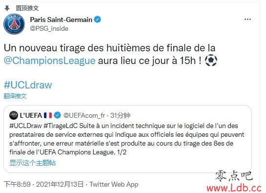 曼联、切尔西等队官推确认欧冠重新抽签,仅皇马官推无动静