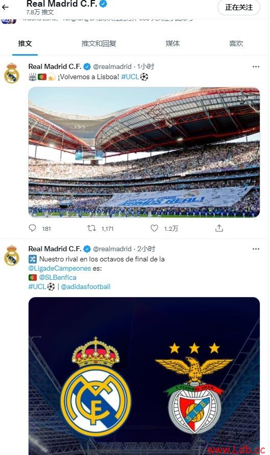 皇马官推最新消息仍然为此前与抽中本菲卡的通告↓