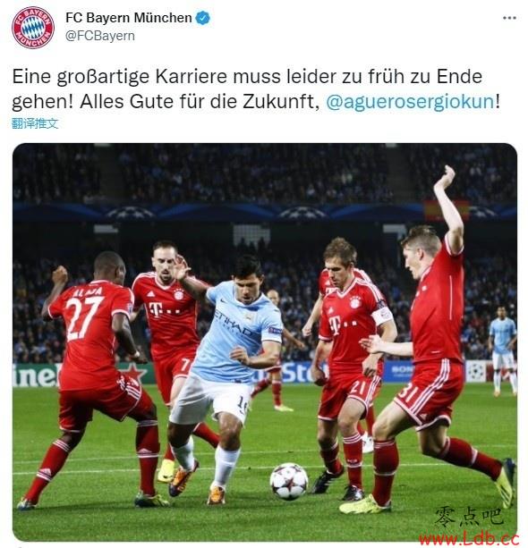 拜仁官推晒阿圭罗1v4时刻:你伟大的职业生涯结束得太早!